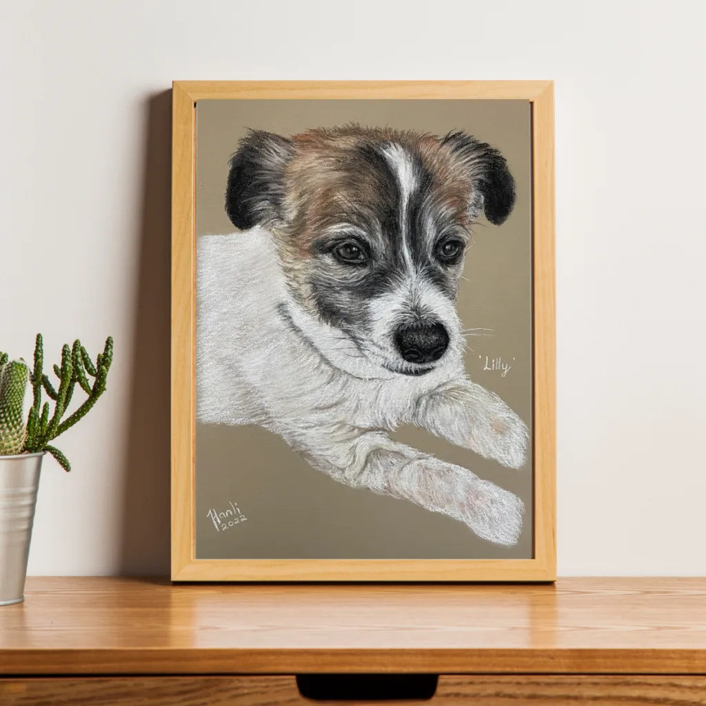 Soft pastel portraits have a smooth, almost powdery look. The colours are rich but blended softly, creating a delicate, velvety texture that brings out your pet’s sweet expressions and fluffy features. It feels warm, emotional, and beautifully handmade.